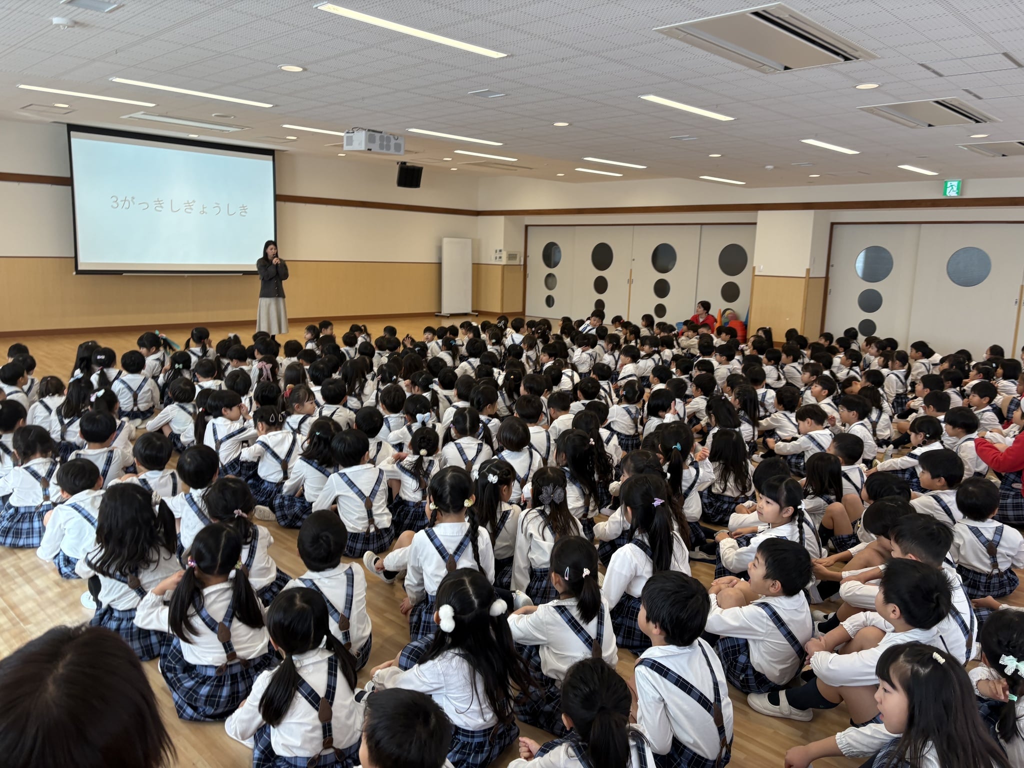 天王学園幼稚園は1歳児・2歳児のお子さまも入園できます! 一覧へ戻る3学期始業式2026-01-08新年あけましておめでとうございます。3学期始業式を多目的ホールにて実施しました。今日から登園の子どもたちは、充実した冬休みのお話をたくさんしてくれました。始業式では園長先生のお話からはじまり、先生からは3学期の行事のお話がありました。3学期は短いですが、お友だちや先生との関わりを大切にしながら、楽しい園生活を過ごすことができるよう教職員一同努めて参ります。